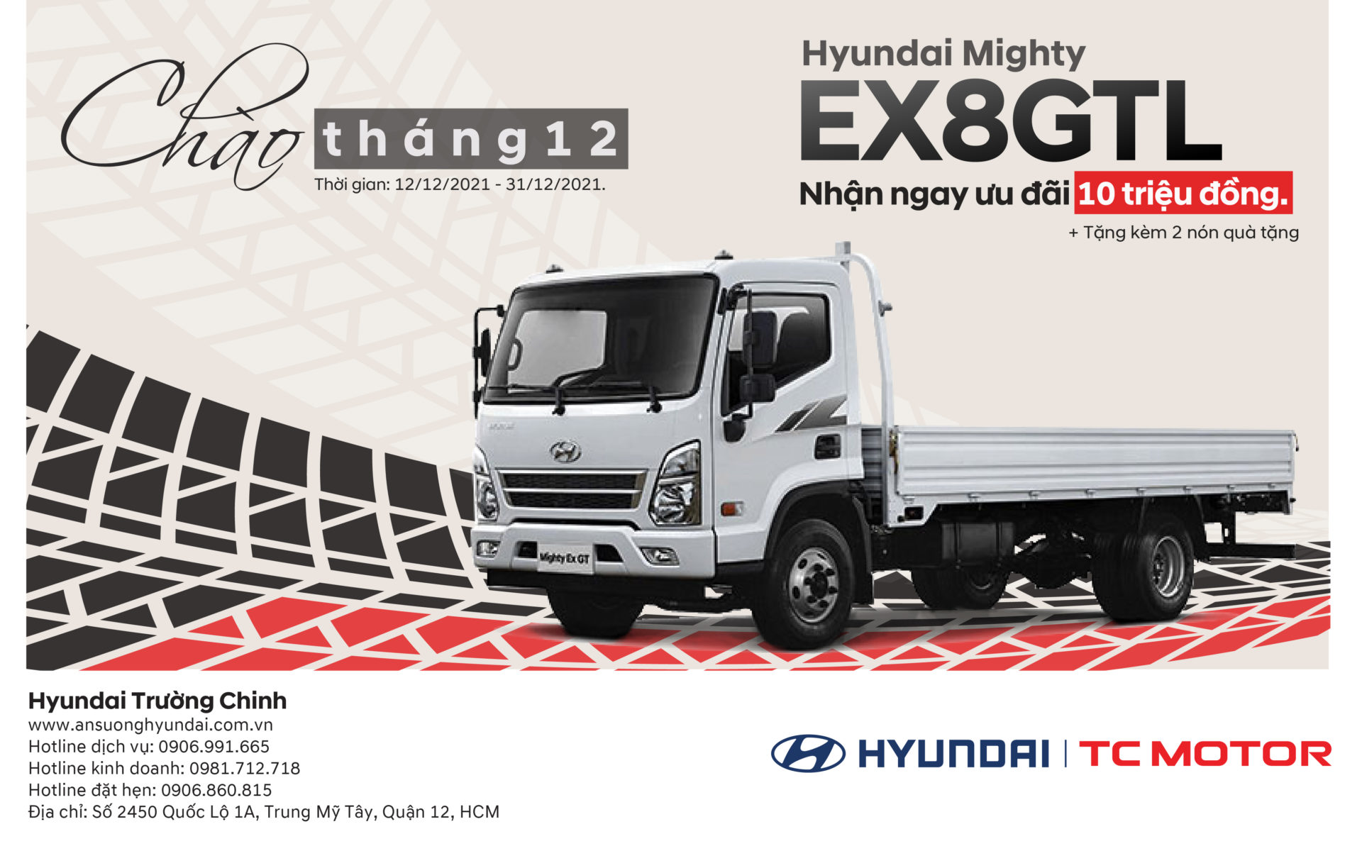 Thời gian: Từ 12/12/2021 – 31/12/2021, chỉ áp dụng duy nhất tại đại lý xe Hyundai Tải Trường Chinh.