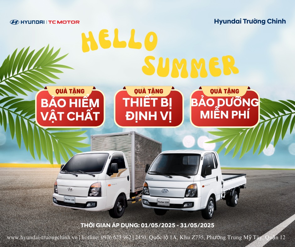 Tháng 5 này, Hyundai Trường Chinh chào hè cùng những ưu đãi bất ngờ với các dòng xe Porter H150, Mighty N250, W11SL, W750, Solati,… !!!