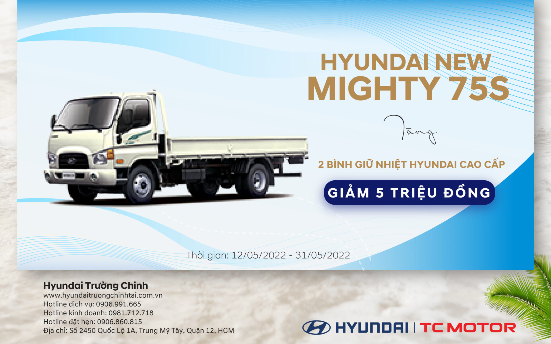 HYUNDAI NEW MIGHTY 75S – GIẢM 5 TRIỆU ĐỒNG TẶNG KÈM 2 BÌNH GIỮ NHIỆT CAO CẤP