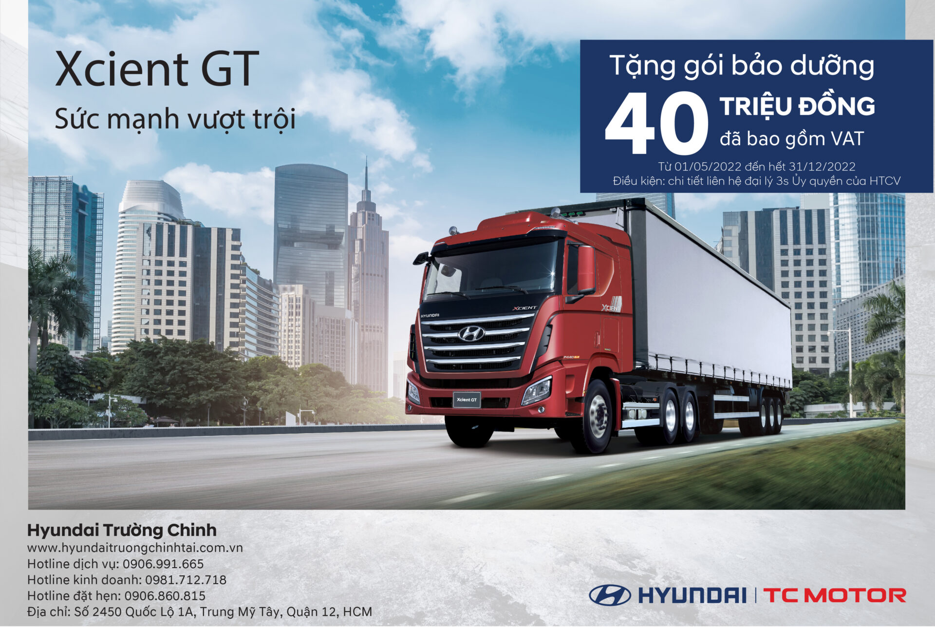 Ưu đãi đặc biệt cho dòng xe XCIENT GT của HYUNDAI vẫn đang rất HOT. Hãy liên hệ ngay với đại lý gần nhất để biết thêm chi tiết về gói quà tặng bảo dưỡng đặc biệt này nhé!