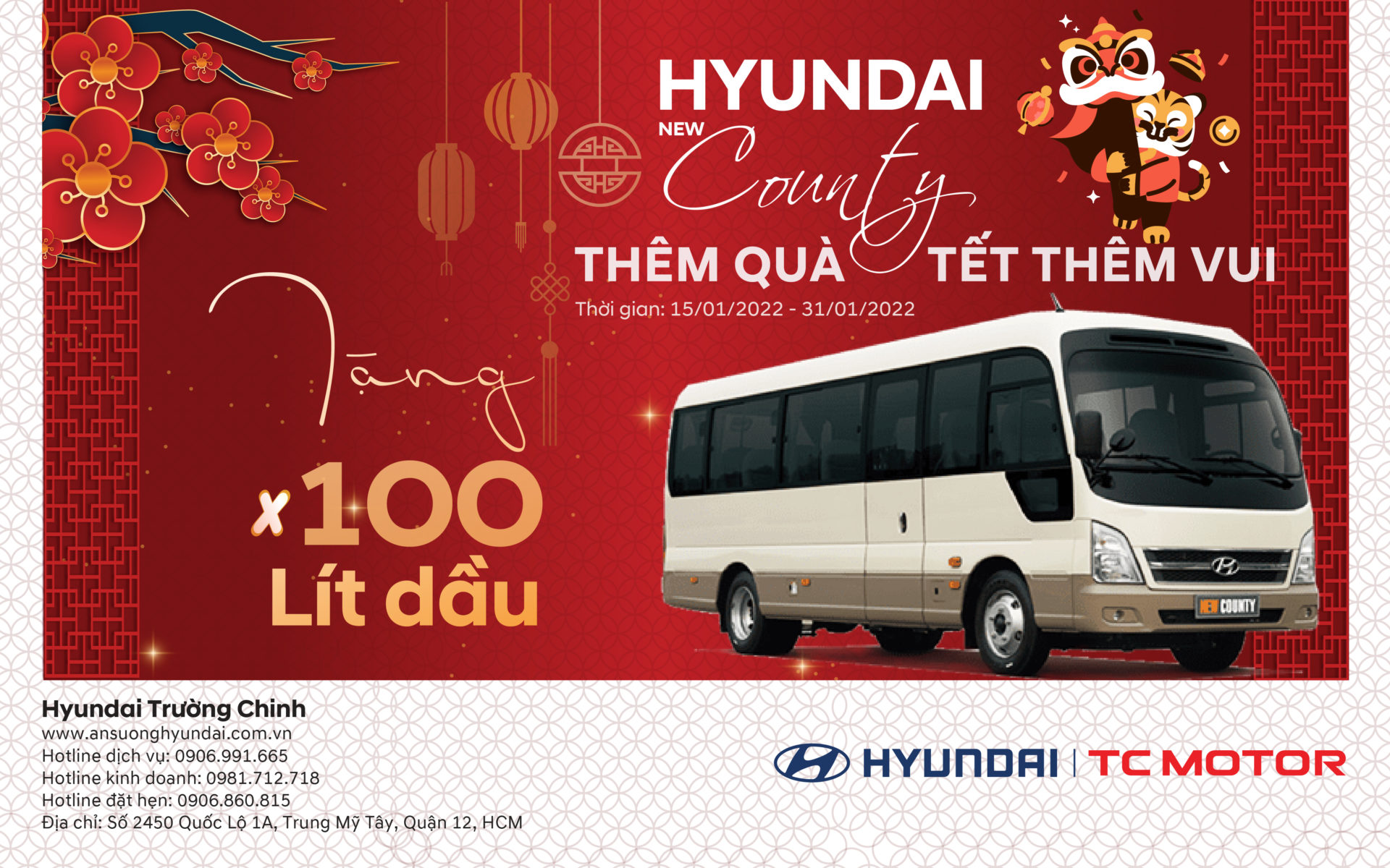 THÊM QUÀ, TẾT THÊM VUI – TẶNG 100 LÍT DẦU KHI MUA XE HYUNDAI NEW COUNTY