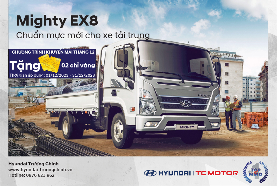 Tặng ngay 02 chỉ vàng 9999 khi mua xe Hyundai New Mighty EX8 Series trong tháng 12 này. Tại Hyundai Tải Trường Chinh luôn có: – XE SẲN GIAO NGAY. – Thủ tục nhanh gọn – Hỗ trợ trả góp lên đến 80% Hãy gọi ngay HOTLINE: 0976 623 962 (24/7) để được hộ trợ…