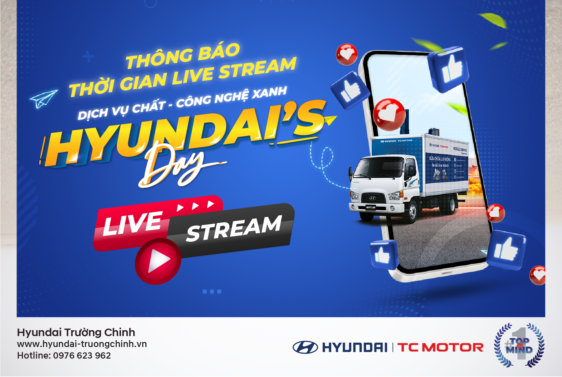 Hyundai’s Day chính thức trở lại với chủ đề “DỊCH VỤ CHẤT – CÔNG NGHỆ XANH’, khi tham gia chương trình Quý khách hàng có cơ hội trải nghiệm các dòng xe Hyundai cùng với đó là bảo dưỡng xe miễn phí tại chương trình. Vào lúc 10h00 ngày 15/06/2024 trên Fanqage Hyundai Tải Trường…