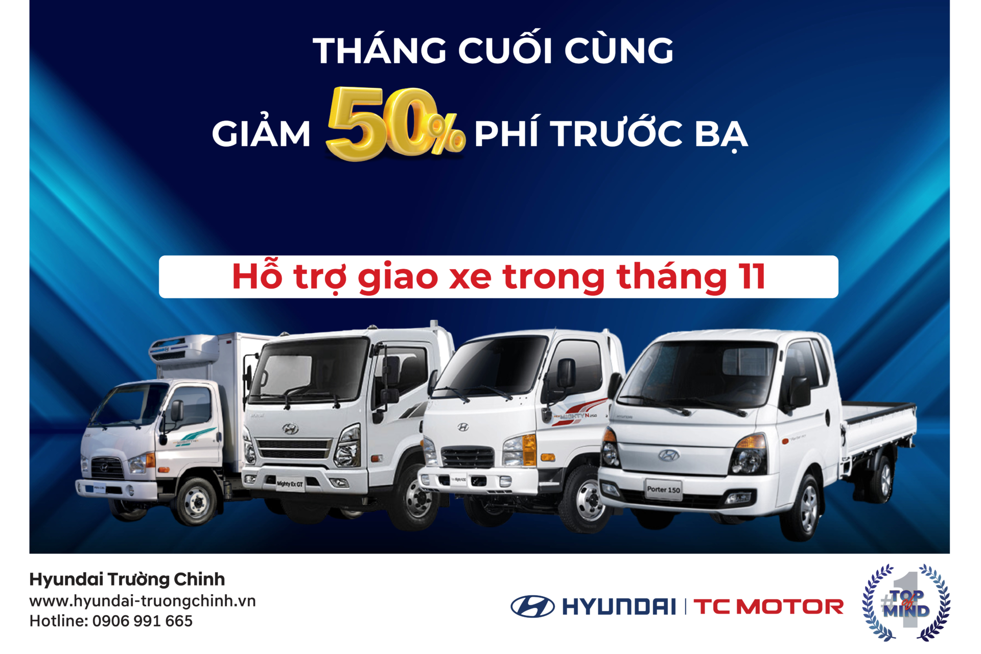 Chính sách giảm 50% sẽ kết thúc vào 30/11/2024, chỉ còn khoảng 4 tuần nữa sẽ chính thức kết thúc đây là cơ hội cuối cùng để nhận ưu đãi. Hyundai trường chinh hỗ trợ quý khách hàng nhận xe trong tháng 11 này. Hãy liên hệ ngay Hyundai Trường Chinh để nhận ngay ưu…