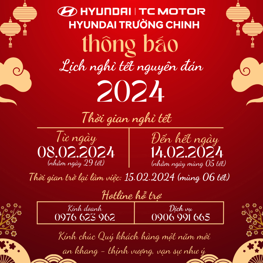 Xem ThêmHYUNDAI TRƯỜNG CHINH – THÔNG BÁO LỊCH NGHỈ TẾT NGUYÊN ĐÁN NĂM 2024