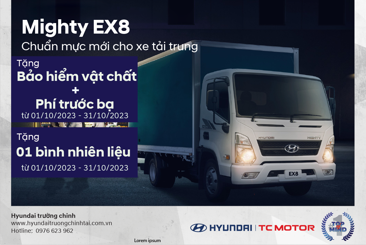 Xe tải trung Mighty EX8 sản phẩm phân khúc 7 tấn đến từ nhà Hyundai đang làm mẫu xe tải trung hot nhất thị trường hiện nay, với chiều dài thùng lên đến 5,7m, động cơ 2,9L mạnh mẻ và tiết kiệm nhiên liệu. Trong tháng 10 này quý khách hàng mua xe Mighty EX8…