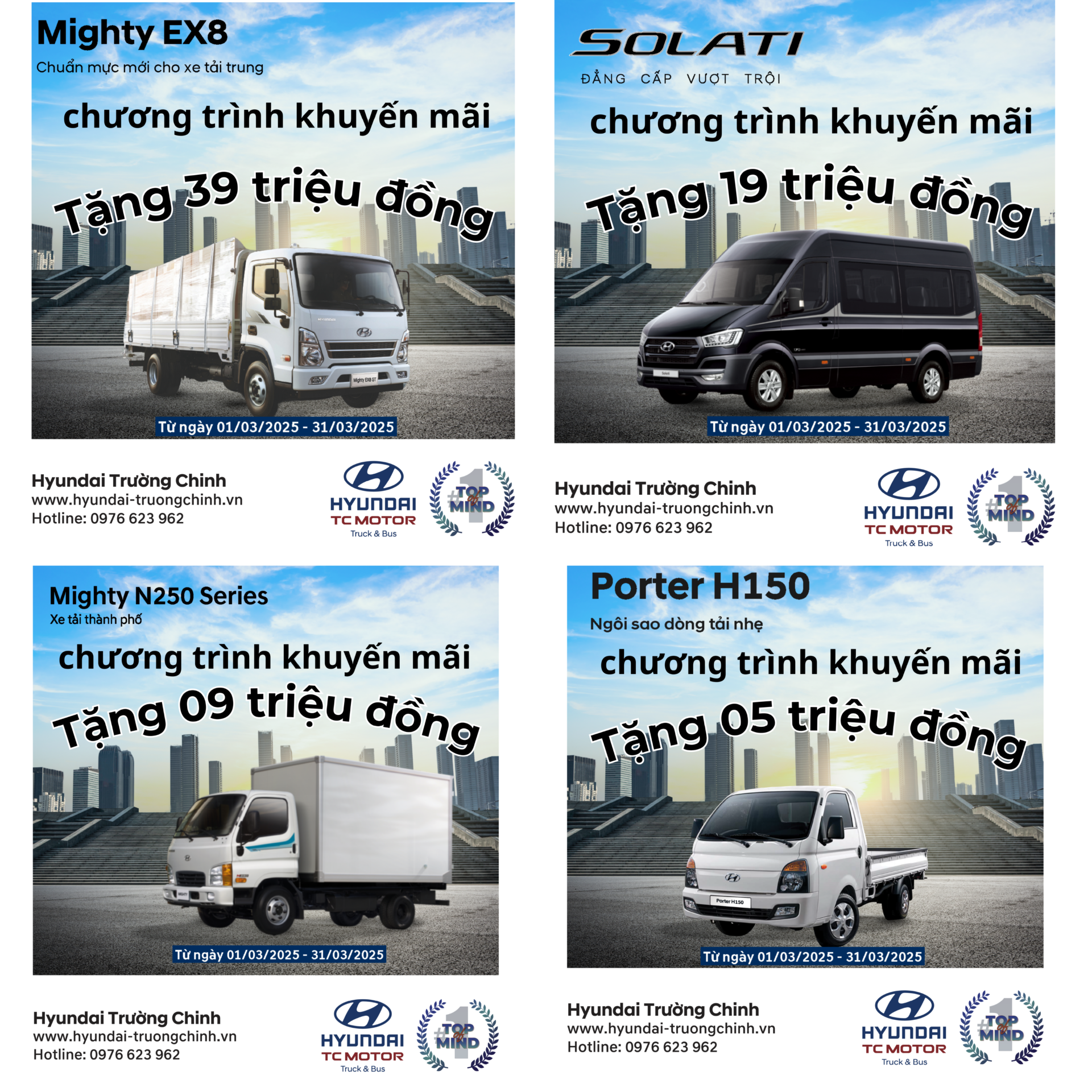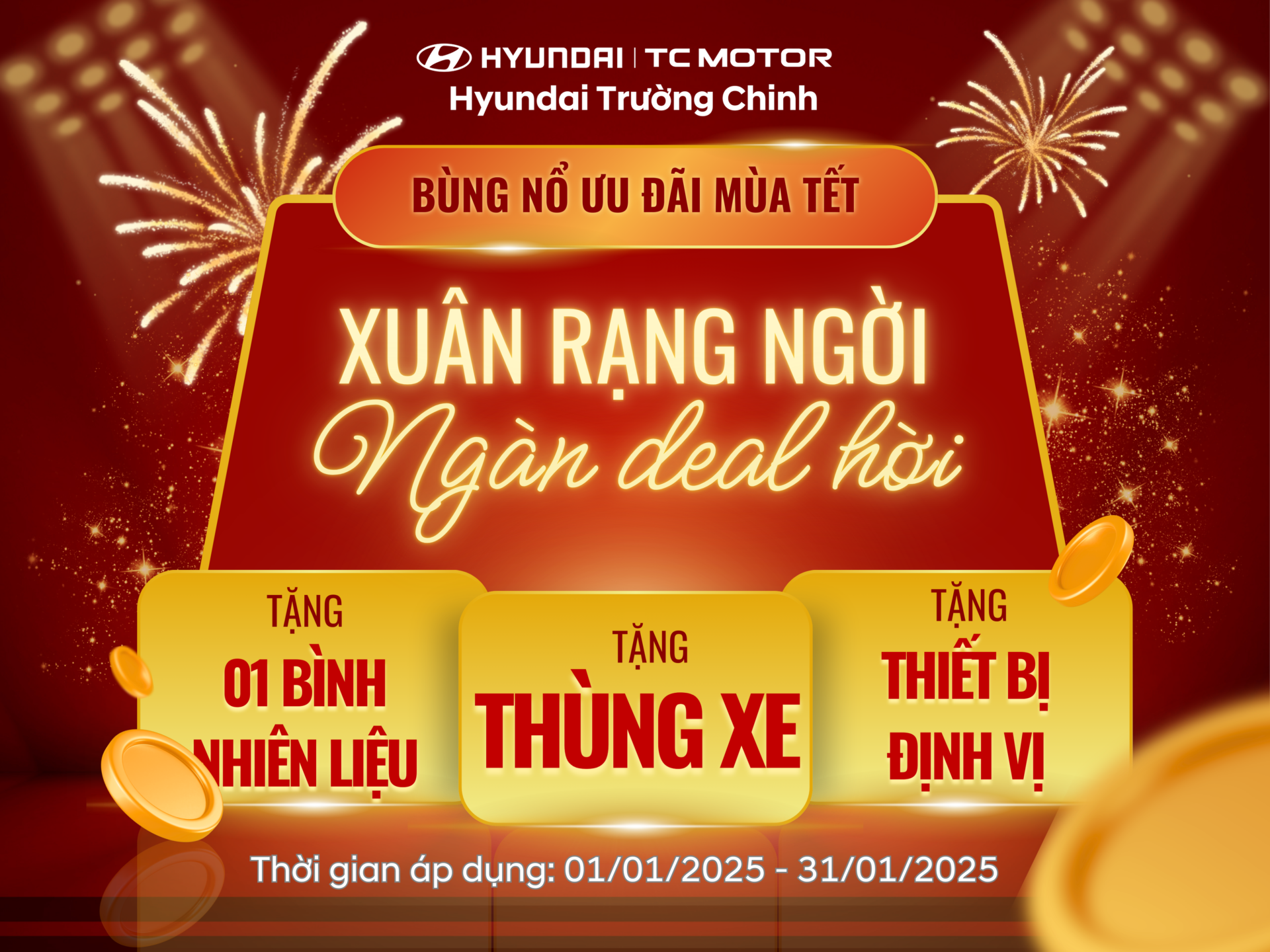 Nhân dịp năm mới 2025 nhằm tri âm khách hàng, Hyundai Trường Chinh tung chương trình ưu đãi xuân rạng ngời ngàn deal hời dành cho Quý khách hàng mua xe trong tháng 01.2025, với các ưu đãi hấp dẫn như sau: ƯU ĐÃI THÁNG 01 Mighty N250 Series, Porter H150: Tặng 01 bình nhiên…