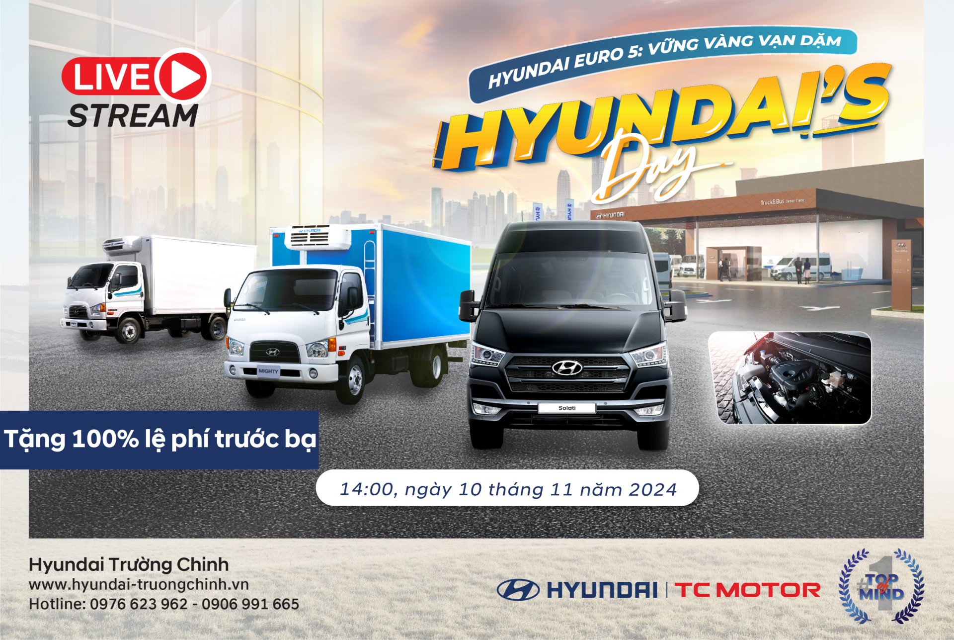 Chương trình Hyundai’s Day tháng 11 sắp đến với vô vàng khuyến mãi, chương trình sẽ diễn ra vào ngày 10 âm lịch với chủ đề “Hyundai Euro 5: Vững vàng vạn dậm” – Vào lúc 14:00 ngày 10 tháng 11 năm 2024 trên fanpage Hyundai Tải Trường Chinh sẽ diễn ra chương trình Hyundai’s…