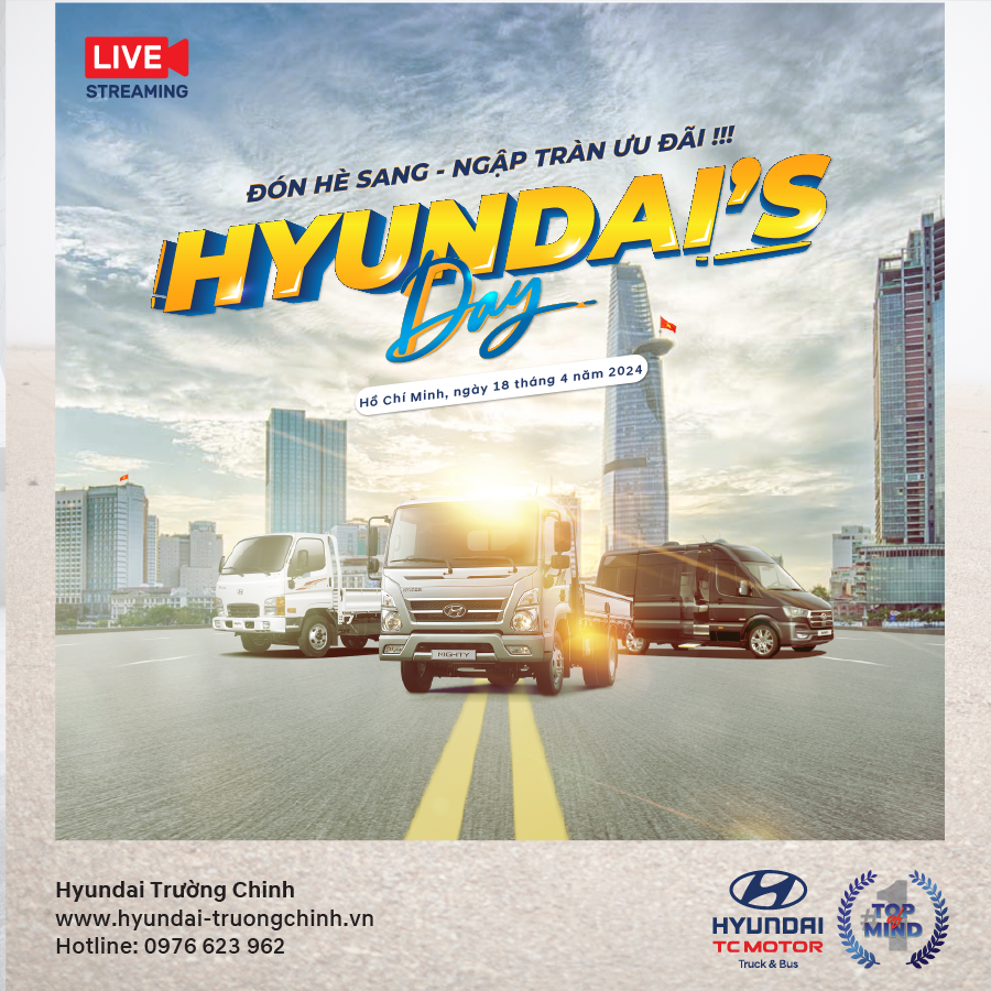 Chương trình Hyundai’s Day đã chính thức quay trở lại với những ưu đãi cực kỳ hấp dẫn. Vào Lúc 11:00 ngày 18 tháng 04 năm 2024 (Mùng 10 tháng 03) trên Fanpage Hyundai Tải Trường Chinh diễn ra chương trình chương trình Livestream ưu đãi chưa từng có. Hãy dón xem chương trình của…