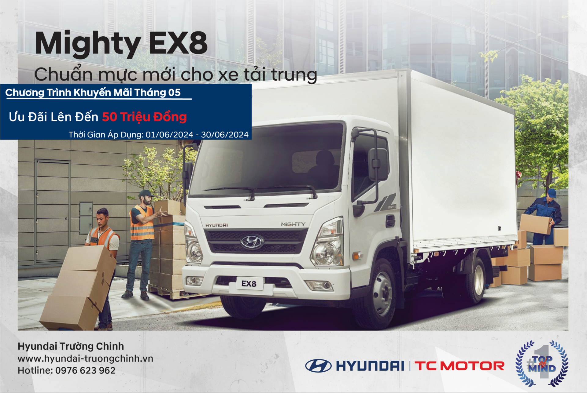 Ưu đãi cực khủng lên đến 50 triệu đồng dành cho dòng xe tải 7 tấn, Mighty EX8 Series, Chương trình khuyến mãi hấp dẫn này chỉ có tại Hyundai Tải Trường Chinh Mệnh danh xe tải chuẩn mực của dòng tải trung, Mighty EX8 Series với thiết kế hiện đại, động cơ mạnh mẻ…