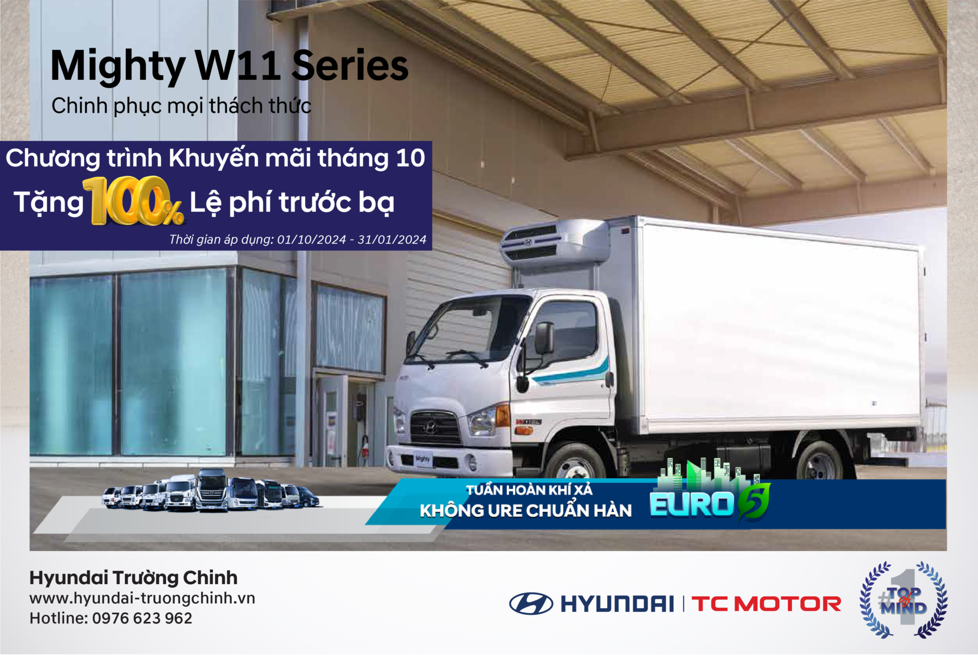 Tháng cuối cùng của năm 2024 Hyundai Trường Chinh ưu đãi ngập tràng với các dòng xe siêu hot từ xe tải đến xe khách. Quý khách hàng có thể nhận được ưu đãi lên đến 20 triệu đồng khi ký hợp đồng mua các dòng xe như: New Porter H150, Mighty N250 Series, Mighty…