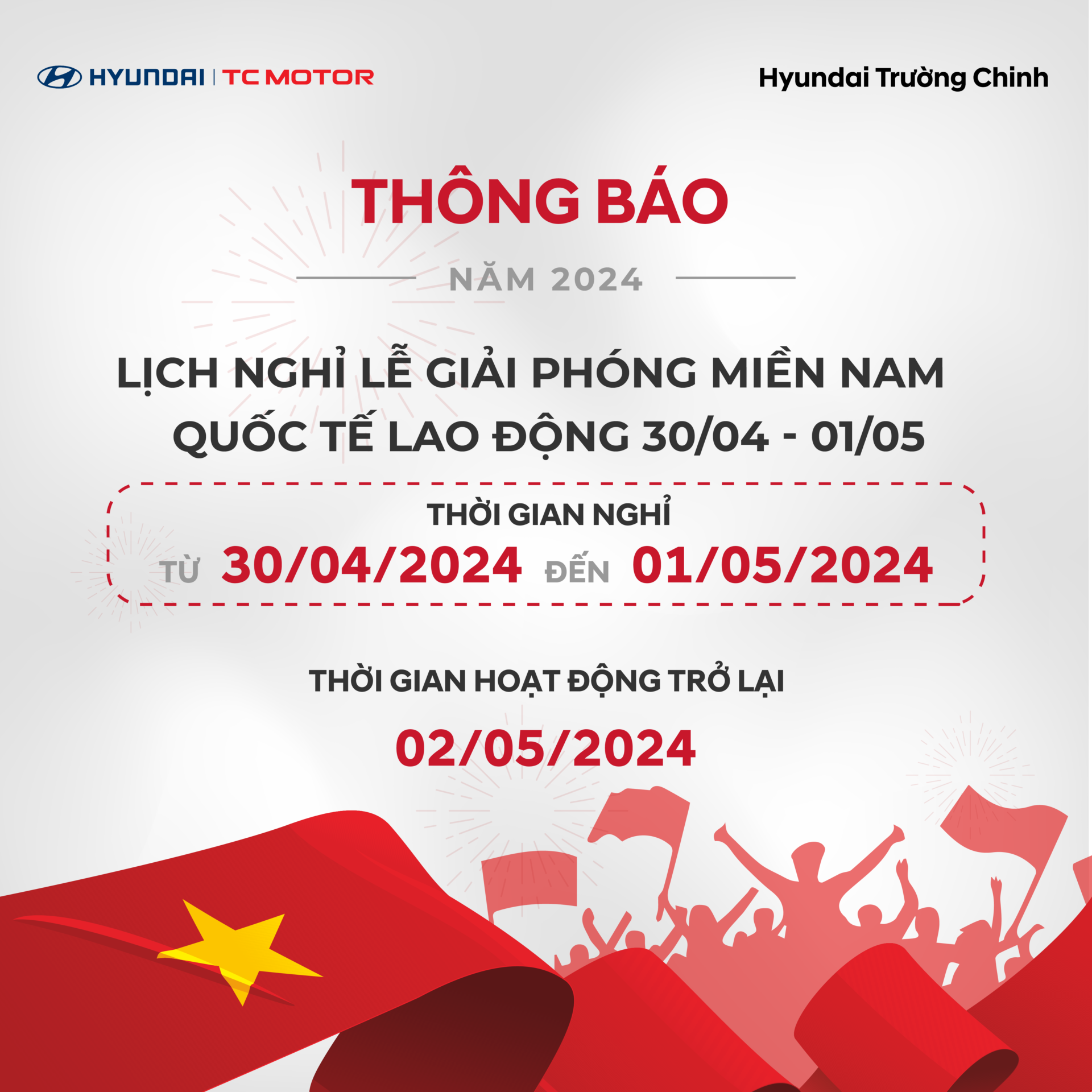 Xem ThêmHYUNDAI TRƯỜNG CHINH THÔNG BÁO LỊCH NGHỈ 30/4 – 1/5