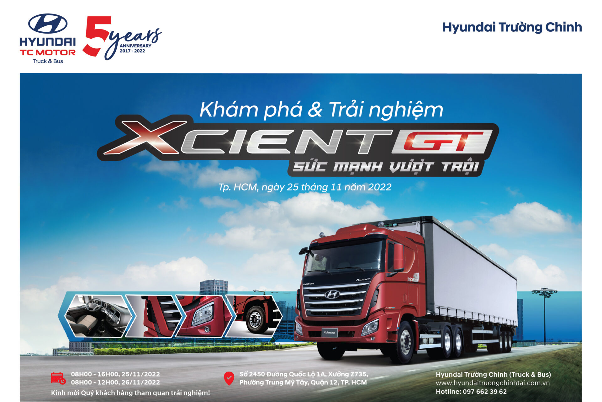 ⚡️Chương trình Trưng bày & Lái thử Đầu kéo Hyundai Xcient GT⚡️ ⏰ 08h00 – 16h00, 25/11/2022 & 08h00 – 12h00, 26/11/2022 📌Tại showroom Hyundai Trường Chinh, Số 2450 Đường Quốc Lộ 1A, Xưởng Z735, Phường Trung Mỹ Tây, Quận 12, TP. HCM. XCIENT GT Euro 4 là sản phẩm có thiết kế và tính…